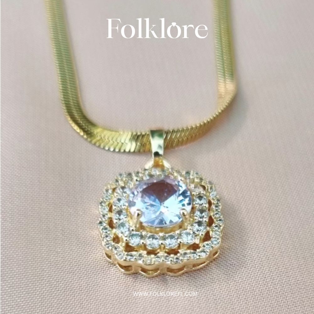 This stainless steel cubic-zirconia necklace is perfect for an eastern and western look. The thick chain is lightweight, which makes it perfect for a hot summer season.